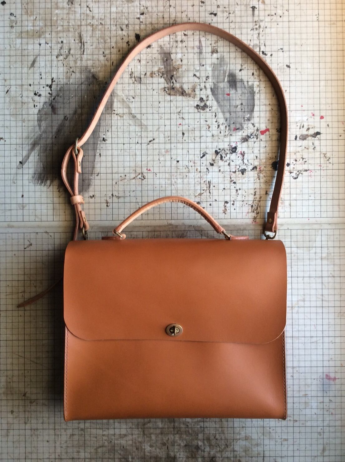 ひねり金具で開閉する横型の3wayバッグです。