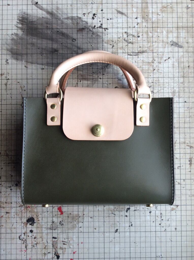 丁寧に作った持ち手やフタがポイントのシンプルなハンドバッグです。