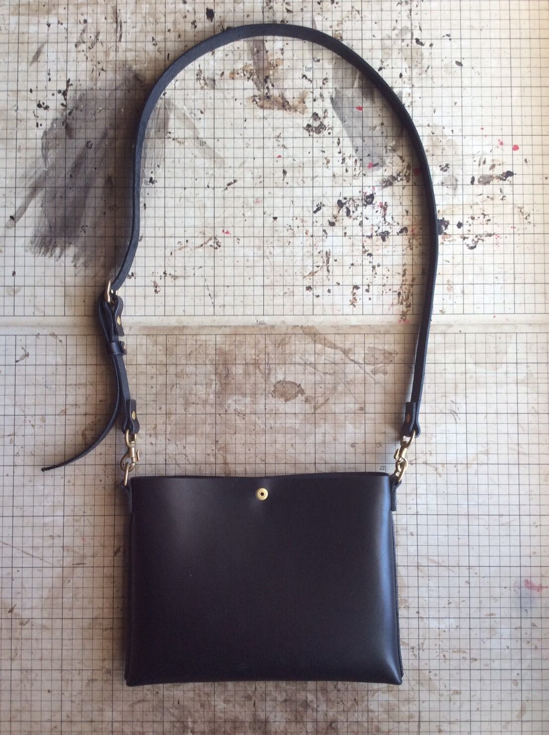 シンプルなデザインの薄型ショルダーバッグです。